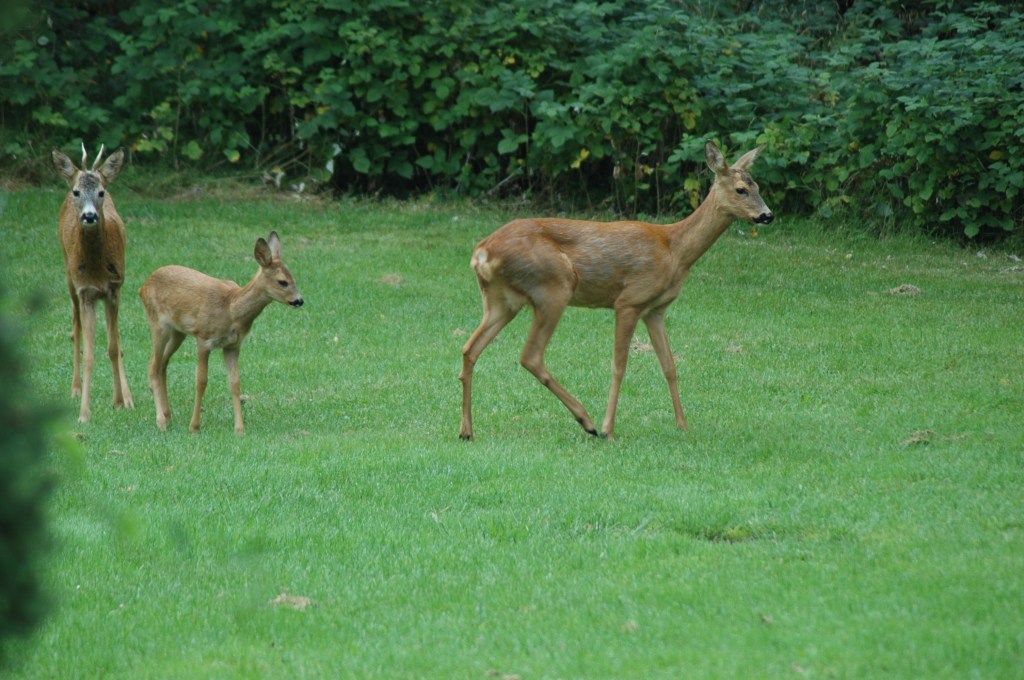 To venninner lufter både skotøy og snakketøy, og legger kanskje ikke merke til rådyret som står vaktsomt og stille rett innenfor turstien.
